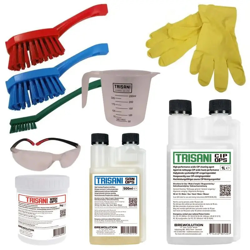 A Trisani tisztító kezdőcsomag átfogó megoldás azoknak a sörfőzőknek, akik a tisztaságot ugyanolyan fontosnak tartják, mint a kézműves sört. Ez az all-in-one csomag mindent tartalmaz, ami egy higiénikus, nagy teljesítményű sörfőzési környezet fenntartásához szükséges – a fejlett tisztítószerektől a gyakorlati fertőtlenítéshez szükséges praktikus eszközökig.